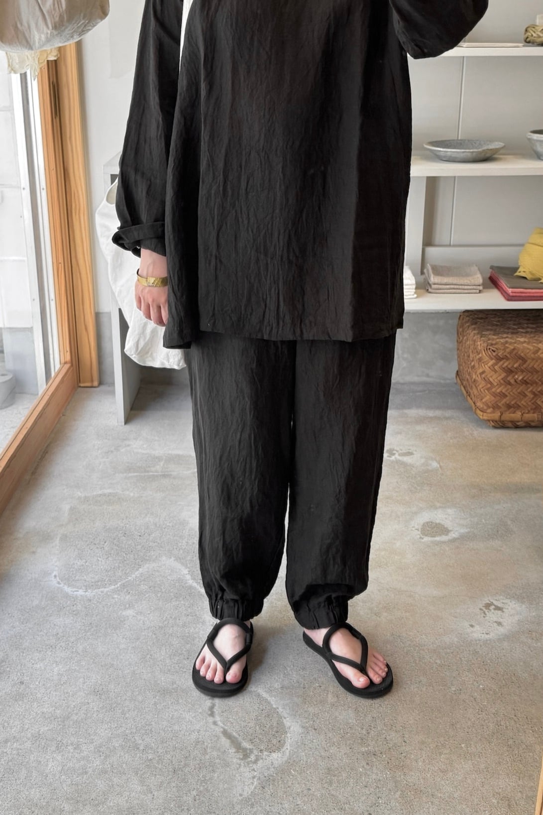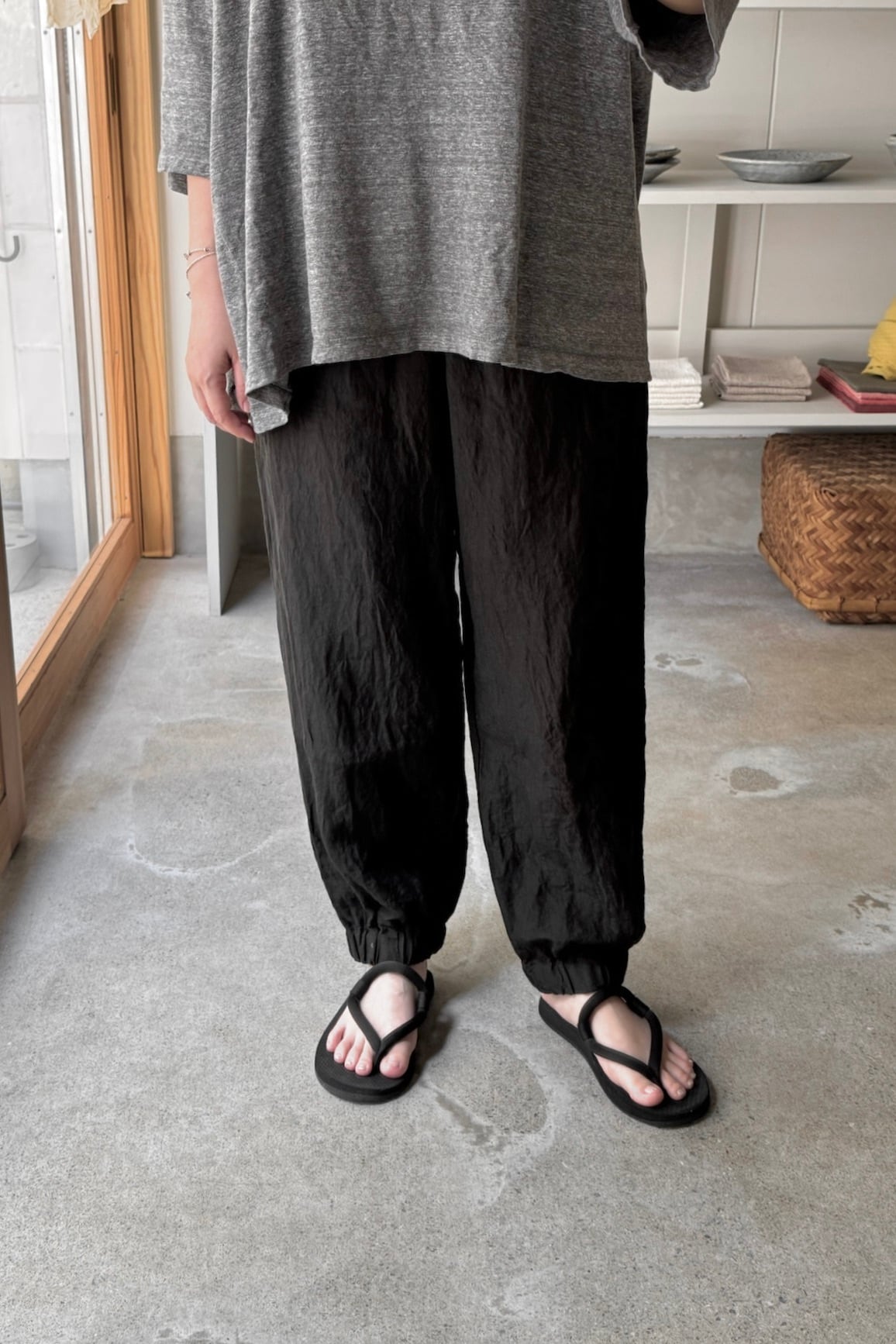 型はLinen Pantsと同じで、裾部分にゴムが入っています。